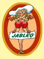 Etiketa na jablkovici . kalvádos Etiketa s obrázkem sexy ženy s ňadérky ve tvaru jablíček. Nápisy můžeme jakkoliv měnit a upravovat – dopsat rok atd… Změny napište do Poznámky.