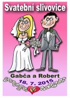 Svatební etiketa s obrázkem ženich a nevěsta Do poznámky napište text a barvu vlasů atd…
