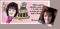 Originální pozvánka s vlastní karikaturou- oslavenkyně – dáma s dortem.