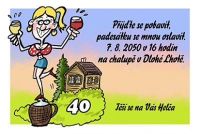 Pozvánka na oslavu narozenin na chalupě. Do poznámky napište: Text vaší pozvánky (datum, místo konání, čas, jméno…)