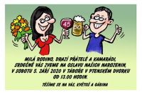 Originální pozvánka na oslavu společných kulatých narozenin.