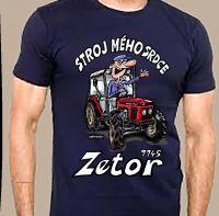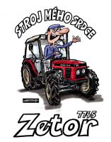 Originální malované tričko s traktorem ZETOR 7745 a psotavou traktoristy – © Ivan Křemeček.