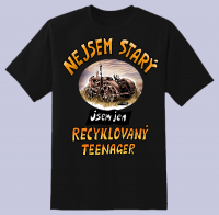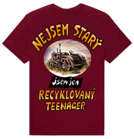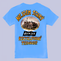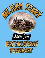 Tričko s ač starým, tak přec krásným legendárním traktorem a nápisem: „NEJSEM STARÝ, JSEM JEN RECYKLOVANÝ TEENAGER“ © design Ivan Křemeček