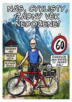 Malovaná etiketa pro šedesátníka – cyklistu