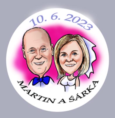 Svatební placka s obrázkem ženicha a nevěsty. Originální dárek, který obohatí váš svatební den a svatební hosté si odnesou krásnou vzpomínku.