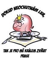 Tričko pro všechny labužníky a milovníky jídla Hláška? " Dokud neochutnám lva, je pro mě králem zvířat prase" s obrázkem prasete.