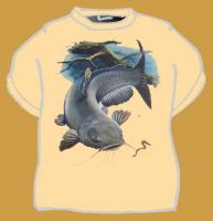 Tričko s potiskem pro rybáře – Sumec Sen každého rybáře ulovit minimálně dvoumetrového krasavce. Prozatím tedy aspoň jako inspirace na tričku.