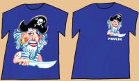 Tričko s pirátem – tisk malým vpřed (možnost dotisku jména), velký tisk na záda.